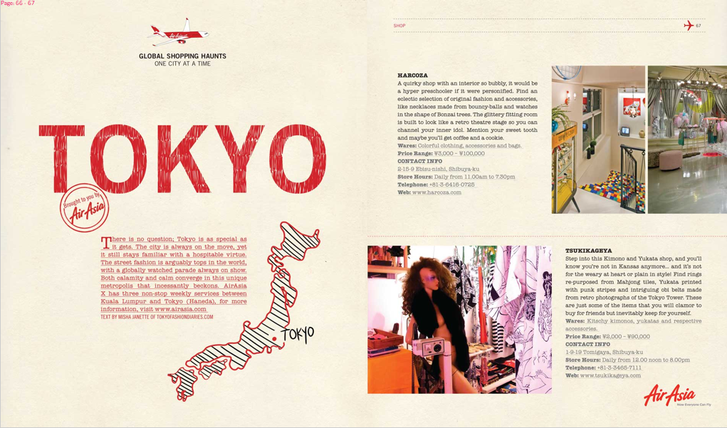 The Japan Times newspaper (lead fashion writer since 2007), Style.com, Kyodo News, WWD Japan, Numero Tokyo, CNN Travel, wallpaper*, NOT Magazine China, The Guardian UK, TRANOI Magazine, Sydney Morning Herald, VISA Japan, So-En Magazine, Catalog Singapore, Superfuture, Racked, Fodor’s, Hint Mag, Tokyo Weekender, Metropolis, NHK World, etc.